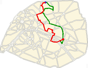 Boulevard Bourdon (Départ) Boulevard Morland Boulevard Henri IV Rue de Lesdiguieres Rue des Tournelles Boulevard Beaumarchais Boulevard des Filles du Calvaire Boulevard du Temple Place de la République Blds Saint Martin, Saint Denis Boulevard de Bonne Nouvelle Boulevard Poissonnière Rue du Faubourg Montmartre Rue Notre Dame de Lorette Rue Pierre Fontaine Place Blanche Boulevard de Clichy Rue Caulaincourt Rue Custine Boulevard Barbès Rue Ordener Rue du Poteau