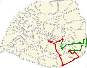 Place de la Bastille (Départ) Boulevard Bourdon Pont Morland Place Mazas Pont d'Austerlitz Place Valhubert Quai d'Austerlitz Pont Charles de Gaulle Souterrain Van Gogh Boulevard Diderot Place de la Nation Cours de Vincennes Rue des Pyrénées Rue d'Avron Boulevard Davout Boulevard Soult Avenue de Saint Mandé Boulevard de Picpus Boulevard de Reuilly Boulevard de Bercy Rue Corbineau Rue de Bercy